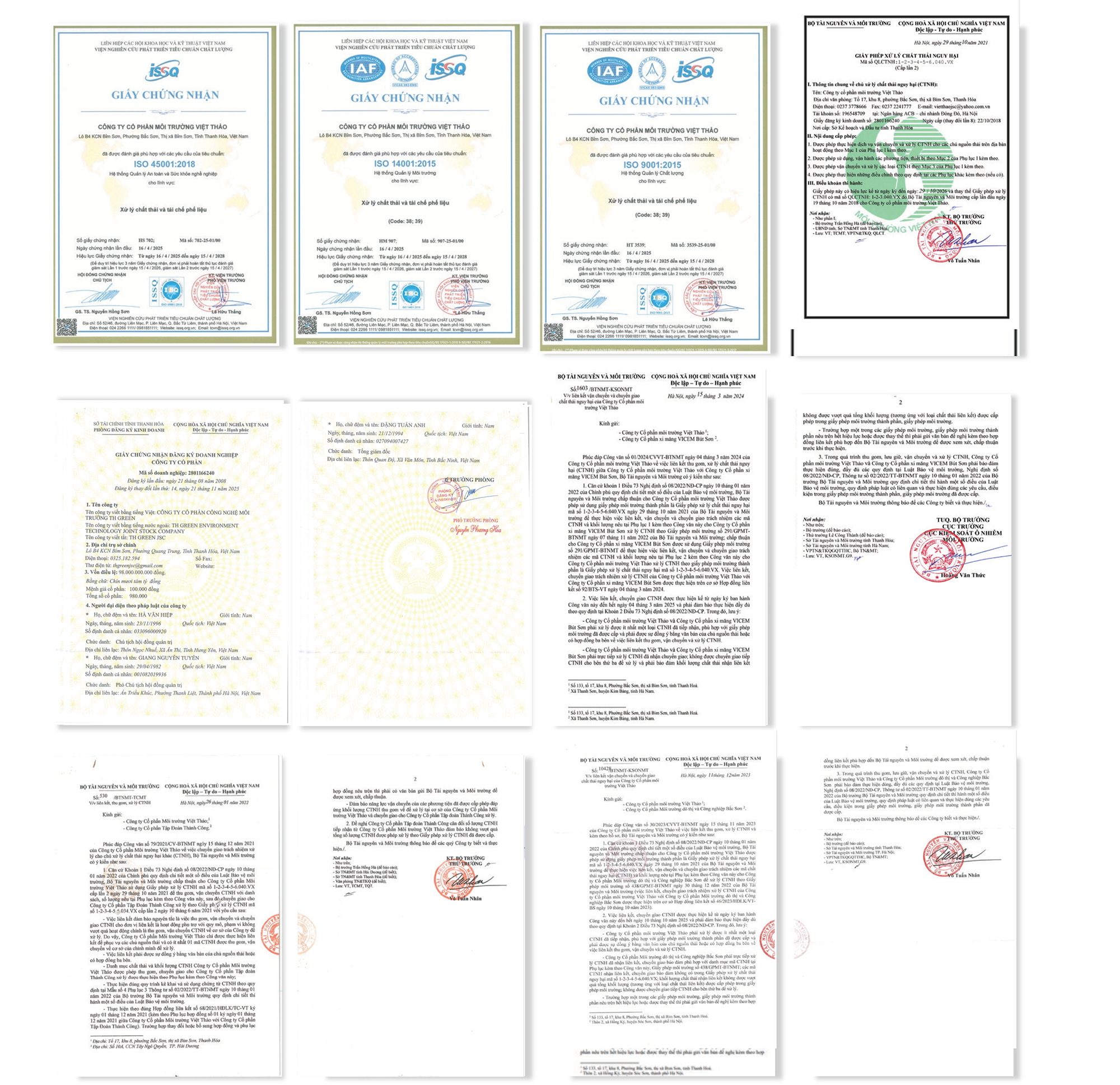Với kinh nghiệm trên 15 năm hoạt động trong lĩnh vực Môi trường, Công ty đã đầu tư xây dựng nhà máy xử lý chất thải với đầy đủ các hệ thống, thiết bị chuyên dụng và đã được Bộ Tài nguyên môi trường cấp giấy phép xử lý chất thải cho phép Công ty hoạt động vận chuyển và xử lý, tái chế chất thải nguy hại cho gần 400 mã chất thải với địa bàn hoạt động trên toàn quốc.