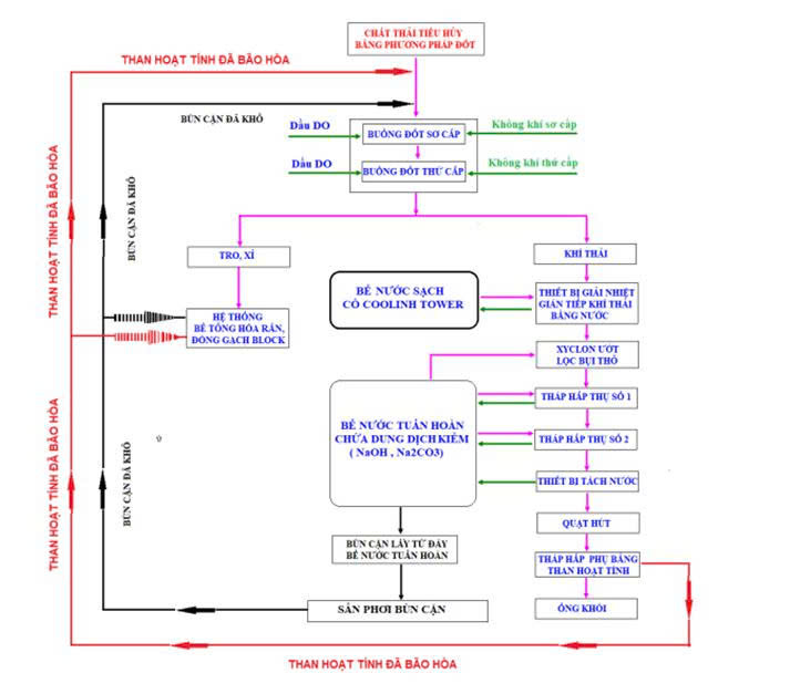 Sơ đồ công nghệ lò đốt chất thải số 02