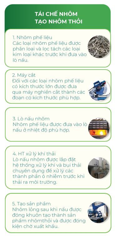 Các loại nhôm phế liệu được phân loại và lọc tách các loại kim loại khác trước khi đưa vào lò nấu.